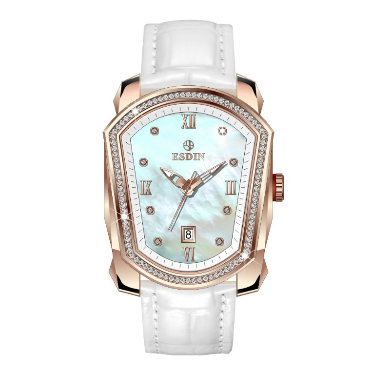 Private DIY Automatic Mechanical Waterproof Watch with Gold and Genuine Mother-of-Pearl Dial