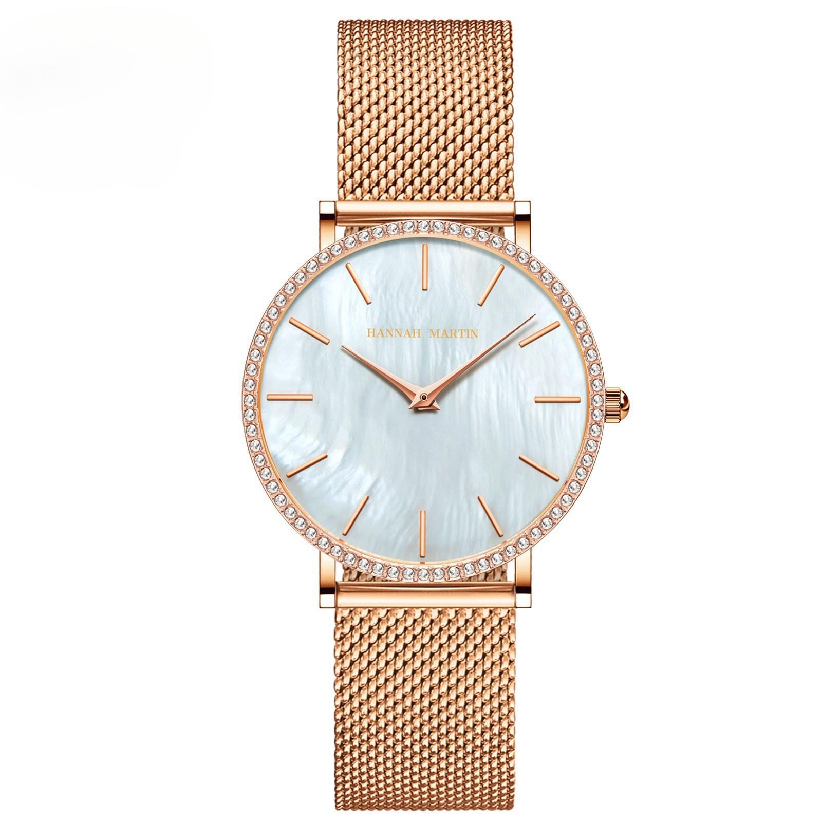 Swiss Mechanical Movement Full Rose Gold Chain Watch with Diamond-Inlaid Mother-of-Pearl Dial