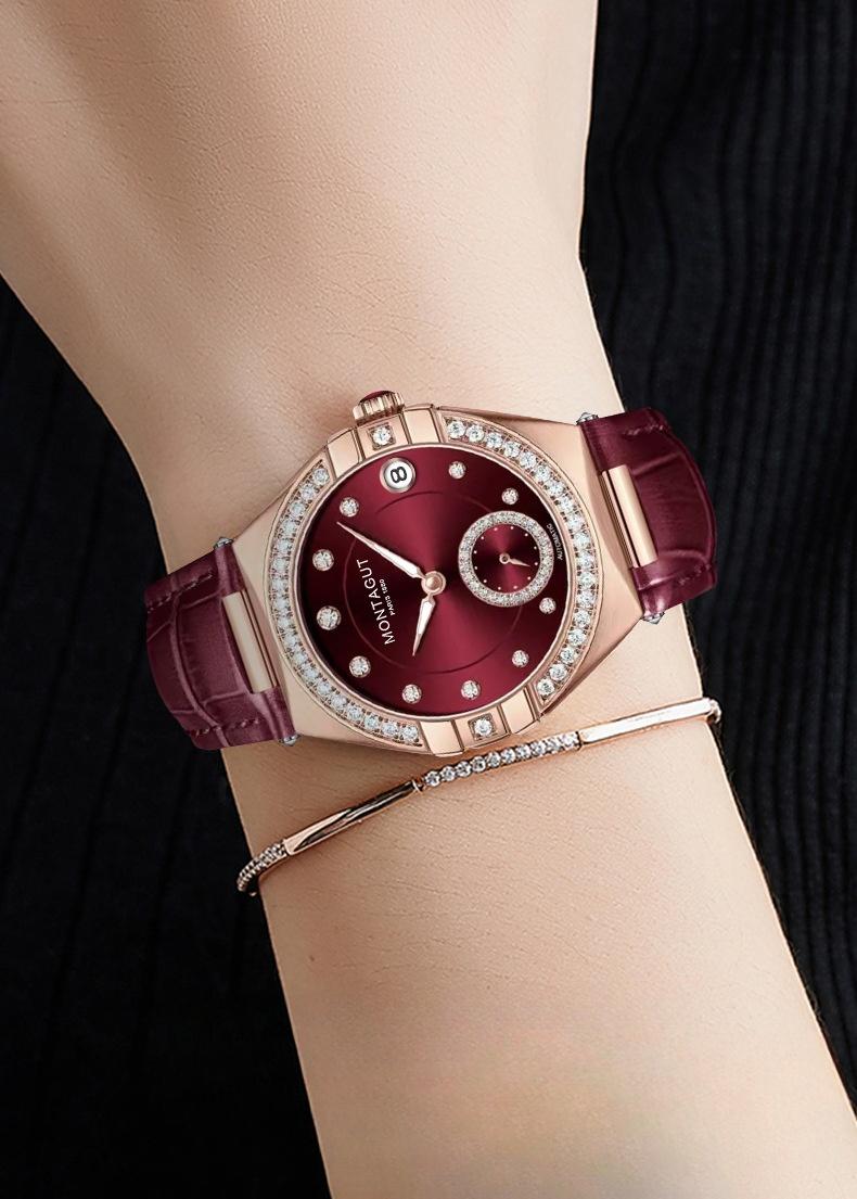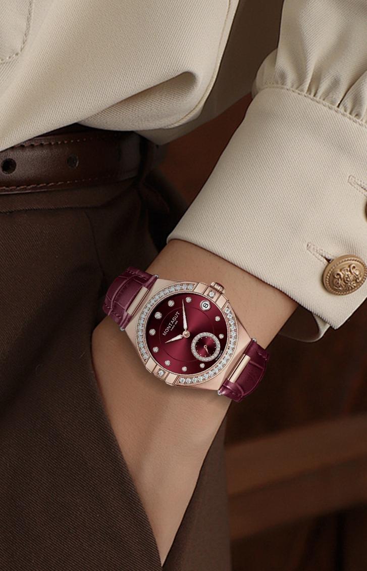 This diamond-set calendar waterproof women's mechanical watch is designed for modern women who value both elegance and functionality. Featuring an automatic mechanical movement, it ensures precise timekeeping and long-lasting performance. The diamond accents add a touch of luxury, making it suitable for both everyday wear and special occasions.